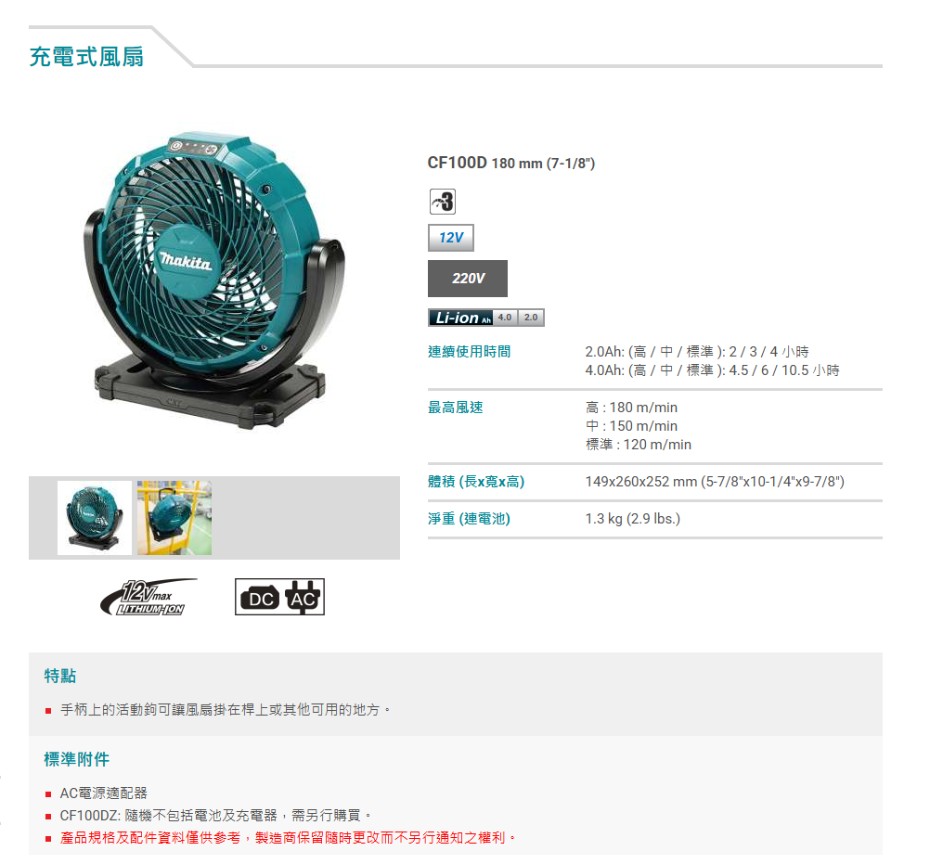 2.0Ah: (高 / 中 / 標準 ): 2 / 3 / 4 小時