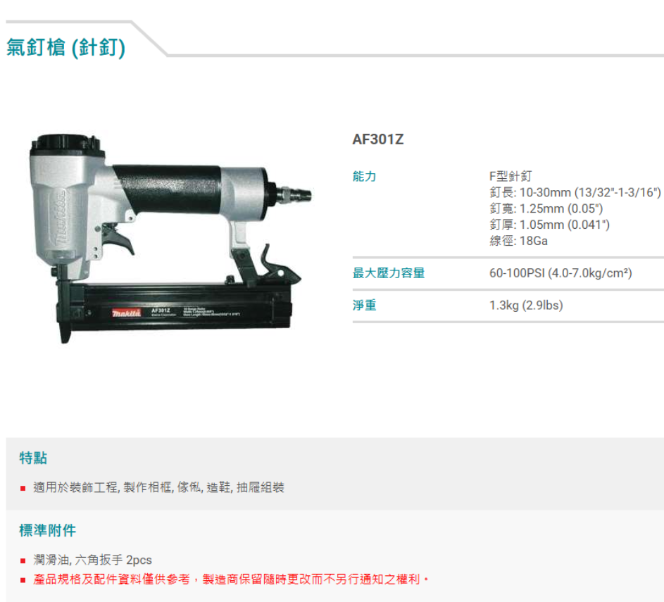 釘長: 10-30mm (13/32"-1-3/16")